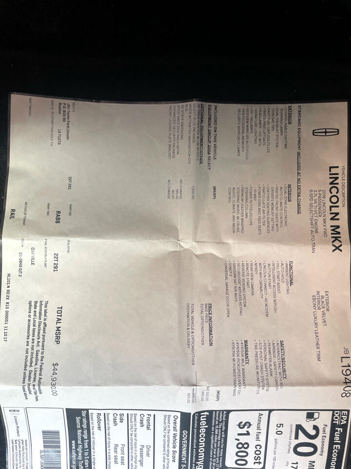 The Lincoln MKX keeps you comfortable with Auto Climate. The installed navigation system will keep you on the right path. The vehicle features a hands-free Bluetooth phone system. This vehicle is equipped with the latest generation of XM/Sirius Radio. Protect this unit from unwanted accidents with a cutting edge backup camera system. Apple CarPlay: Seamless smartphone integration for it - stay connected and entertained on the go! This model comes equipped with Android Auto for seamless smartphone integration on the road. This 2018 Lincoln MKX has only one previous owner, verified by AutoCheck. The leather seats in the vehicle are a must for buyers looking for comfort, durability, and style. The state of the art park assist system will guide you easily into any spot. Never get into a cold vehicle again with the remote start feature on this model. This mid-size suv has a clean AutoCheck report, ensuring its impeccable vehicle history.